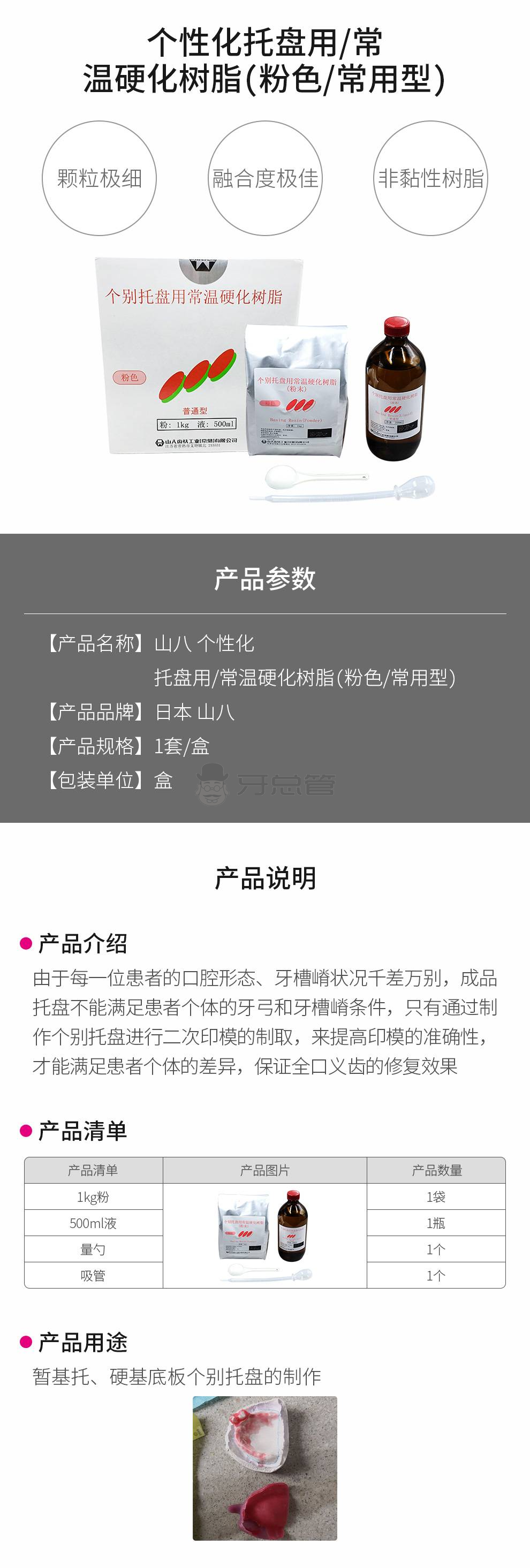 山八 个性化托盘用/常温硬化树脂(粉色/常用型) 粉1kg+...